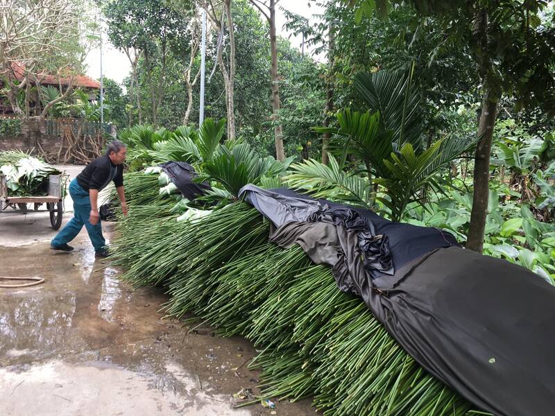 Ghi nhận của PV Lao Động ngày 28.1, nhiều hộ dân ở làng Tràng Cát thời điểm này đang hối hả cắt, xếp lá để kịp vận chuyển đến các cơ sở đã đặt hàng từ trước.