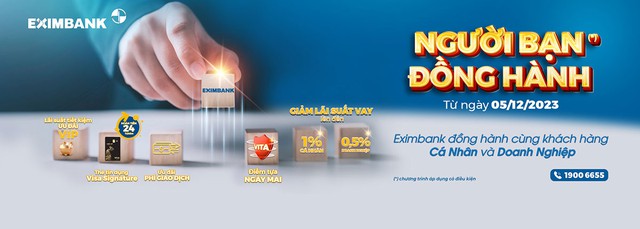 Từ ngày 5.12, Eximbank triển khai chương trình "Người bạn đồng hành" đi cùng các khách hàng cá nhân, khách hàng doanh nghiệp với rất nhiều chính sách ưu đãi. Dù bối cảnh chung của nền kinh tế còn khó khăn nhưng ngân hàng kỳ vọng bức tranh những tháng cuối năm sẽ tiếp tục được cải thiện, đặc biệt với nhu cầu vay vốn thường tăng đến từ cả khách hàng cá nhân và doanh nghiệp.