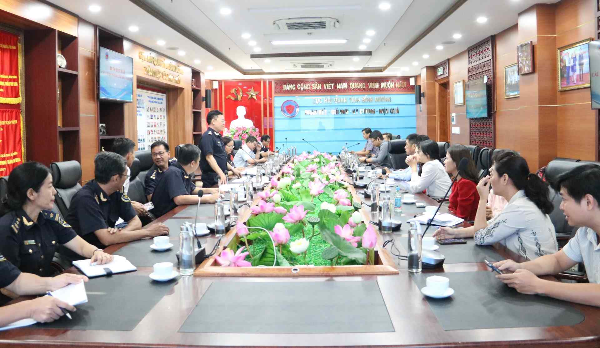 Buổi gặp mặt báo chí, thông tin tình hình kết quả hoạt động năm 2023 của Cục Hải quan tỉnh Bình Dương. Ảnh: Đình TrọngTỉnh Bình Dương chủ yếu hàng hóa nhập khẩu để gia công, sản phẩm gia công xuất khẩu, đây lại là hàng miễn thuế. Cho nên thời gian công sức bỏ ra rất nhiều, nhưng nguồn thu lại không cao so với mặt bằng chung của toàn ngành.