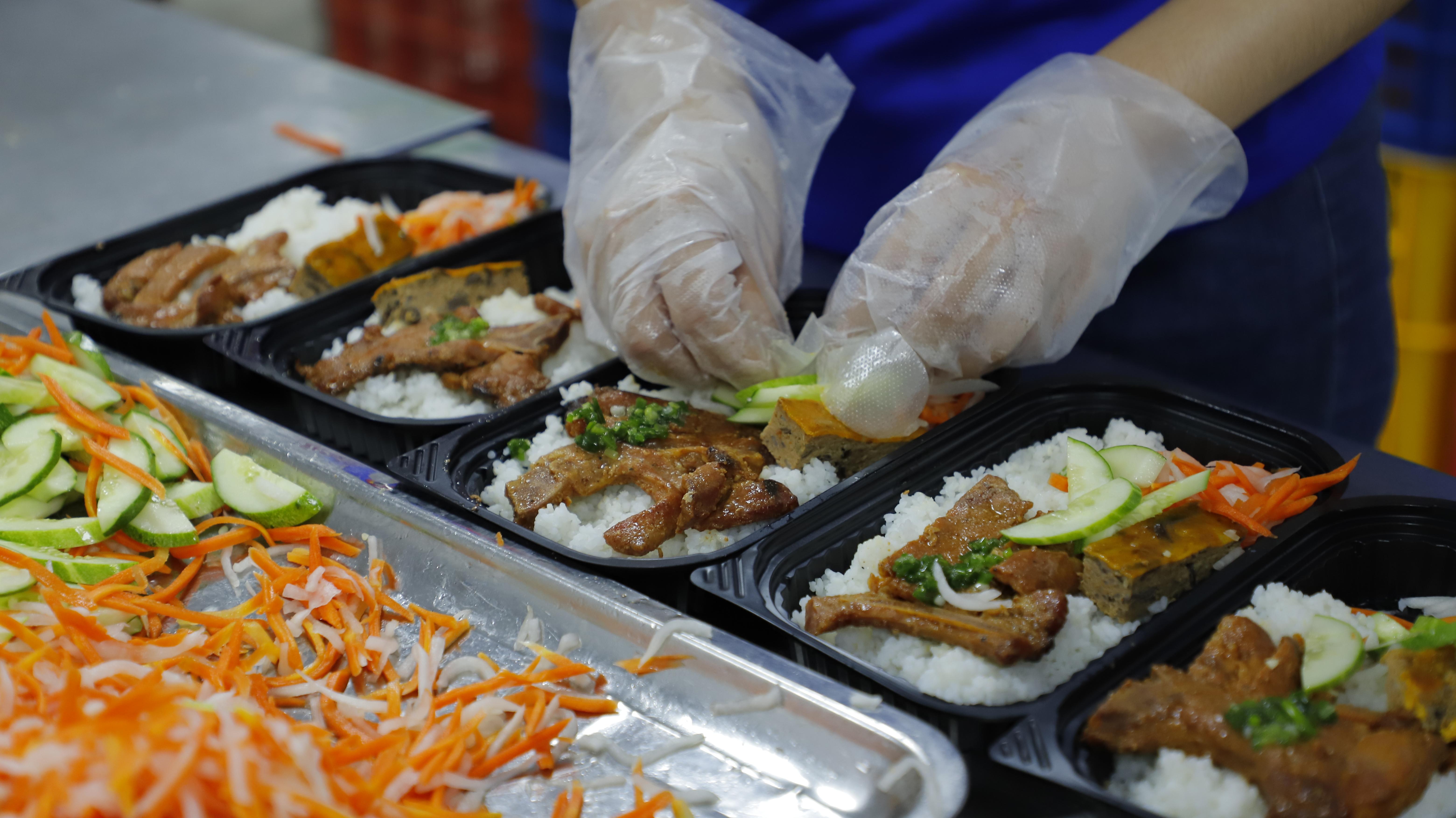Các phần ăn được chuẩn bị trước khi vận chuyển đến bệnh viện |