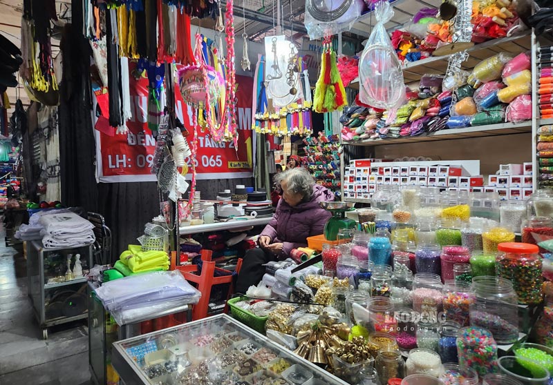 Bà Vũ Bích Loan (80 tuổi, tiểu thương buôn bán tại khu chợ từ những ngày đầu hoạt động) - chia sẻ: “Tôi bán mặt hàng chỉ thêu, đồ trang trí đính trên trang phục của đồng bào các dân tộc, trước đây dịp tết là đắt hàng nhất, nhưng đến nay khách hàng không còn bao nhiêu“.