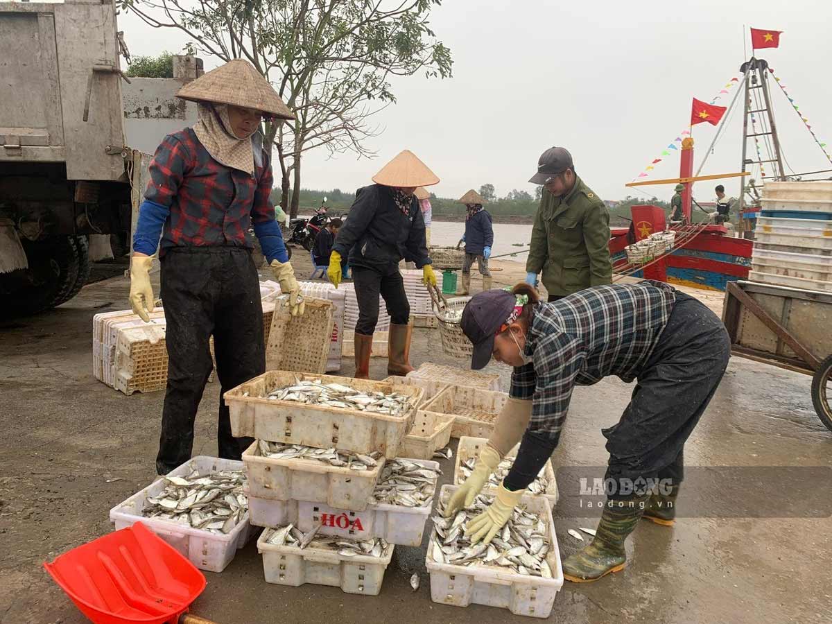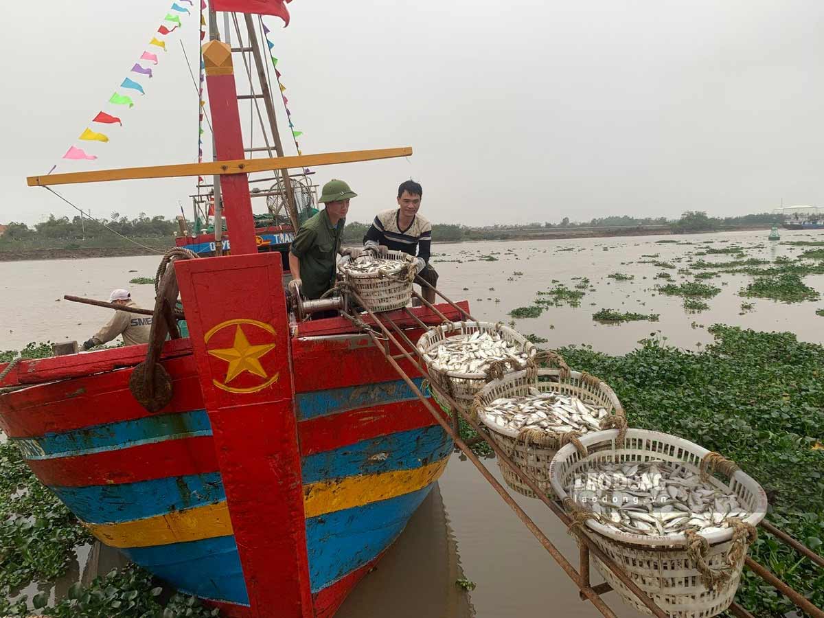 Những mẻ cá của ngư dân huyện Thái Thụy cập bến mang lại thu nhập cao. Ảnh: Hà ViÔng Lê Văn Hoan - Phó Trưởng phòng Nông nghiệp và Phát triển nông thôn huyện Thái Thụy cho biết, để tạo điều kiện, hỗ trợ và quản lý ngư dân bám biển an toàn, trước đó Hội đồng nhân dân tỉnh có chính sách hỗ trợ kinh phí mua, lắp đặt thiết bị giám sát hành trình (GSHT) cho chủ tàu cá trên địa bàn tỉnh. Đồng thời, có chính sách hỗ trợ cước thuê bao vệ tinh duy trì hoạt động thiết bị giám sát hành trình cho chủ tàu cá trên địa bàn tỉnh Thái Bình giai đoạn 2023 - 2025 theo Nghị quyết số 02/2023/NQ-HĐND ngày 15.3.2023 của Hội đồng nhân dân tỉnh.