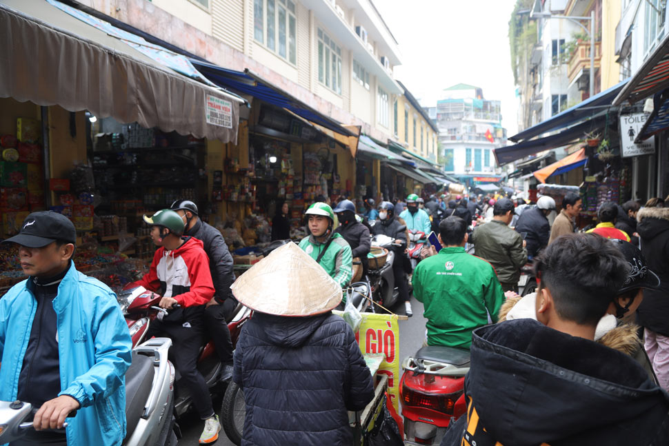 Những ngày cận Tết Giáp Thìn 2024, con phố nhỏ bé này chật chội, không chỗ trống vì người dân đổ xô đi mua sắm. Chỉ dịp giáp Tết, người ta mới chứng kiến cảnh người dân, tiểu thương tất bật bê vác hàng hóa, chen chân chọn hàng.