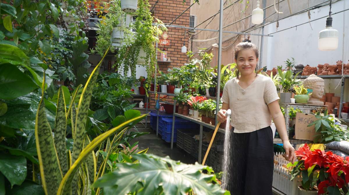 Chị Trần Thị Quỳnh, chủ vựa cây kiểng tại quận Gò Vấp kỳ vọng thị trường hoa Tết sẽ khởi sắc, không rơi vào tình trạng ế ẩm. Ảnh: Nguyên ChânChị Trần Thị Quỳnh - chủ vựa cây kiểng Thích Trồng Cây (quận Gò Vấp) cũng cho biết, tại vựa cây của chị đang chỉ nhập những loại hoa, cây kiểng thường được ưa chuộng, giá vừa phải như hoa mào gà, hoa giấy, cây tắc (quất),...