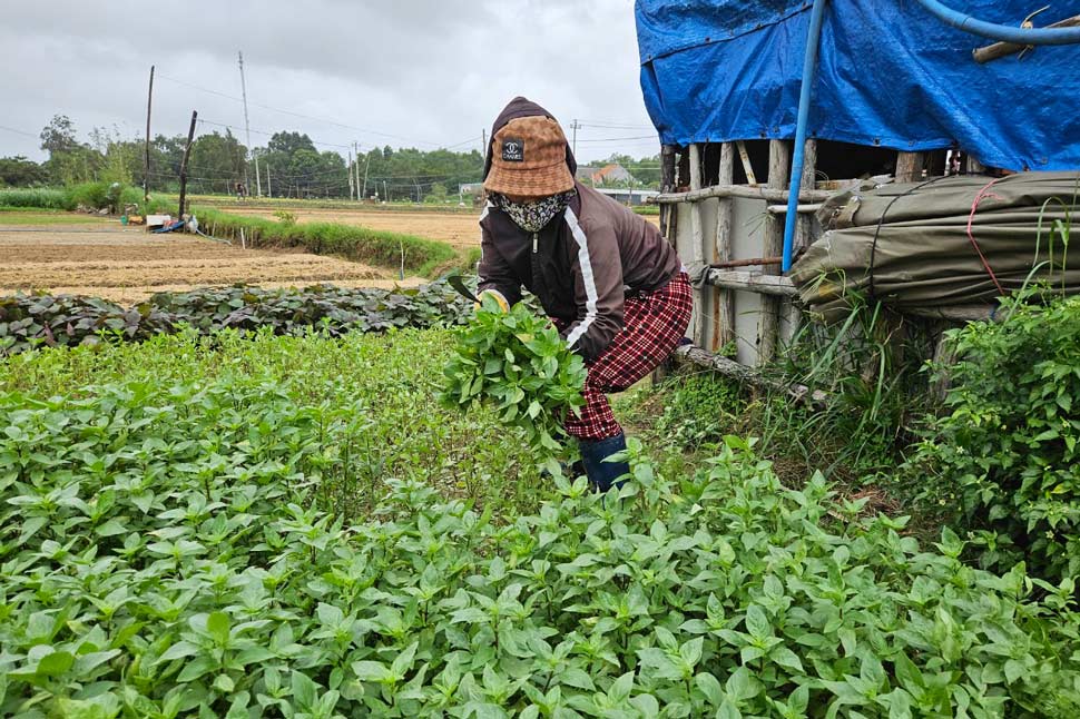 Bà Nga cắt giảm diện tích trồng hoa lay ơn để canh tác rau. Ảnh: Hoài LuânTheo ông Cao Thiên Trí - Chủ tịch Hội Nông dân xã Bình Ngọc, do ảnh hưởng chung của nền kinh tế, thị trường hoa dịp Tết năm nay sẽ có nhiều biến động, do đó các hộ trồng hoa Tết ở địa phương cũng ngần ngại xuống giống. Hơn nữa, giá hoa năm nay dự báo sẽ cao hơn những năm trước do tăng theo chi phí phân, thuốc... Nhiều hộ đã chuyển cắt giảm diện tích trồng hoa để canh tác rau màu cho dịp Tết.