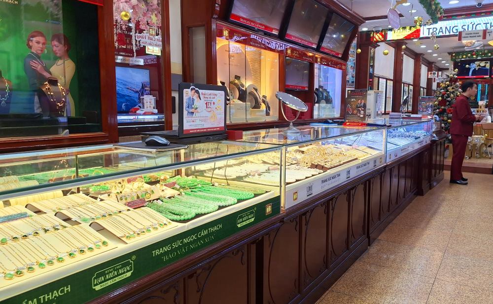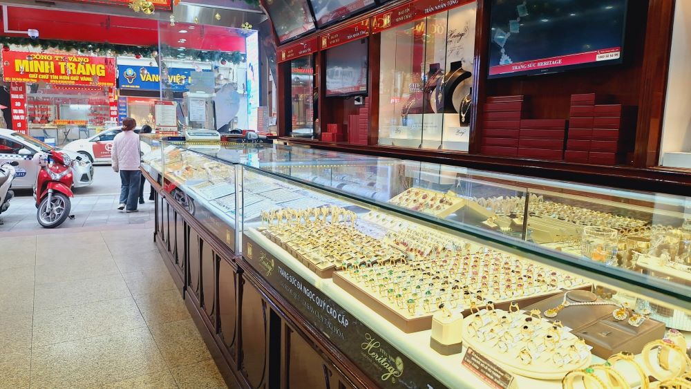 Đa số các cửa hàng kinh doanh vàng bạc đá quý vắng khách giao dịch vào sáng và trưa ngày 4.1.2024. Ảnh: Đền PhúCập nhật giá vàng