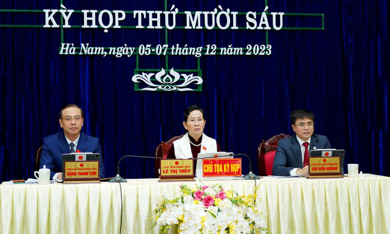 Kỳ họp thứ 16 (Kỳ họp thường lệ cuối năm 2023) HĐND tỉnh Hà Nam khóa XIX, nhiệm kỳ 2021 - 2026 tổ chức ngày 5.12.2023. Ảnh: UBND tỉnh Hà NamĐáng chú ý trong năm 2023, nhiều dự án quan trọng tại tỉnh Hà Nam đã được khởi công, xây dựng như dự án đầu tư xây dựng tuyến đường bộ song hành Quốc lộ 21 (đoạn từ đường ĐH.05 huyện Kim Bảng đến nút giao đường T3 với Quốc lộ 21), dự án đầu tư xây dựng nút giao Phú Thứ và tuyến đường kết nối tại xã Tiên Hiệp, trung tâm thương mại GO! Hà Nam, khai trương Khu phức hợp thể thao Legend Valley Country Club tại Hà Nam...