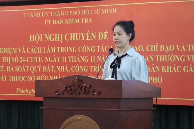 Chiều 23.2, Ủy ban kiểm tra Thành ủy TP.HCM tổ chức hội nghị chuyên đề về thực trạng, kinh nghiệm và cách làm trong công tác lãnh đạo, chỉ đạo và tổ chức thực hiện Chỉ thị số 24 năm 2019 của Ban thường vụ Thành ủy TP.HCM về kiểm kê, rà soát quỹ đất, nhà, công trình và các tài sản khác gắn liền với đất thuộc sở hữu nhà nước trên địa bàn.