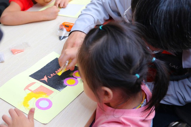 Bác tài Lalamove cùng gia đình cùng nhau tham gia chơi trò chơi, vẽ tranh cát