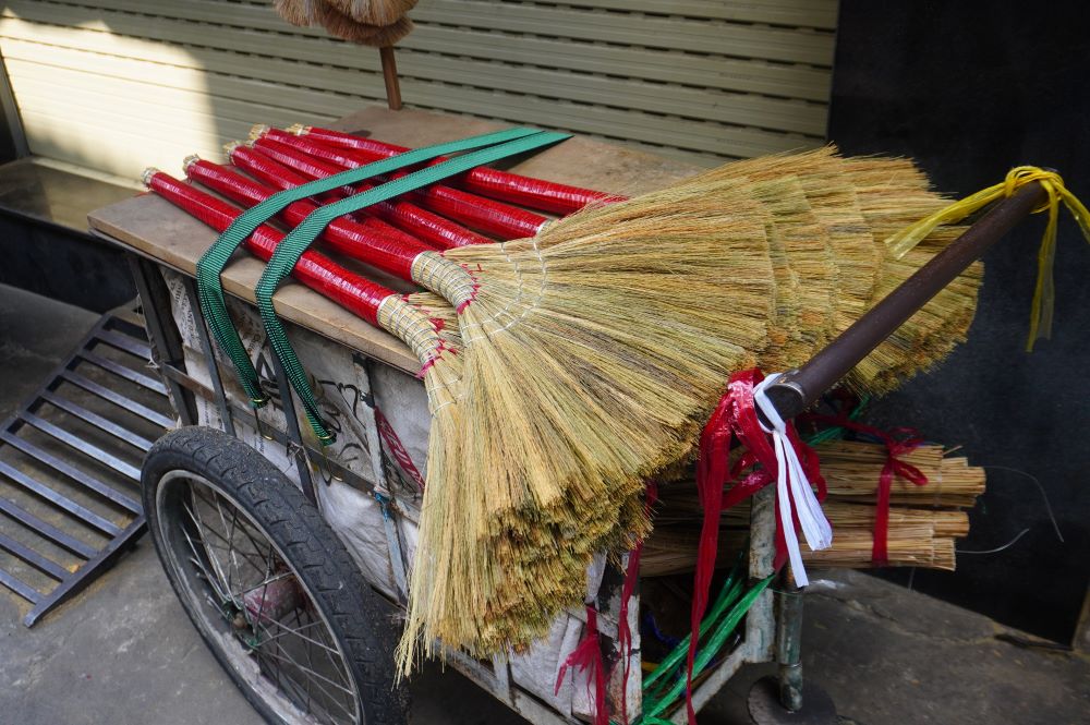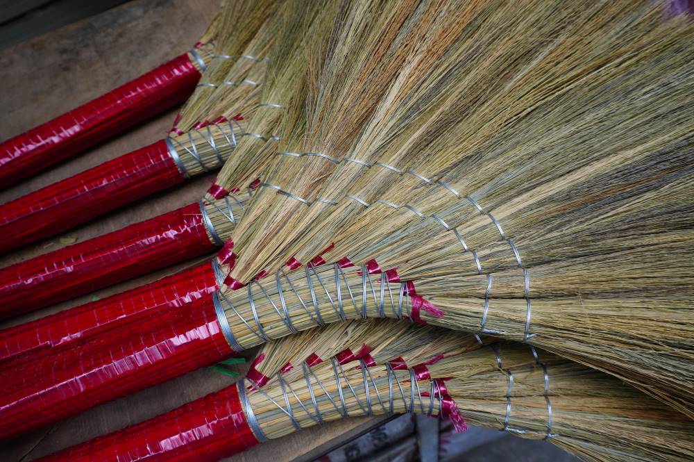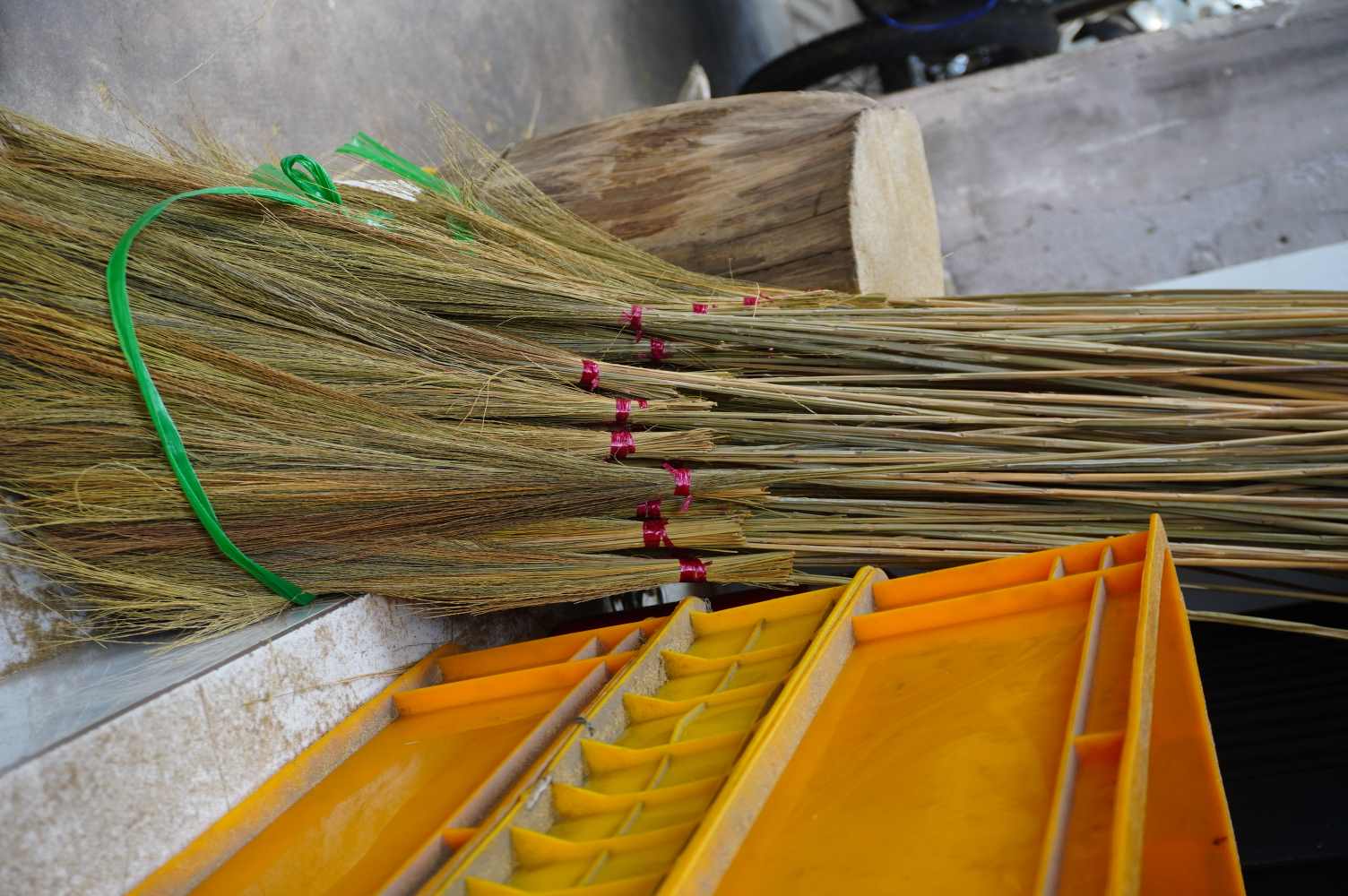 Các bỏ chổi nhỏ sau khi được bện lại với nhau.