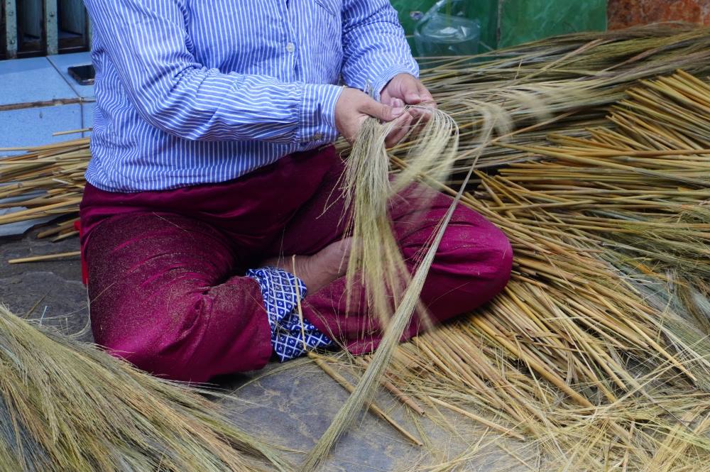 Sau khi đã chọn được nguyên liệu chất lượng, các bó đót sẽ tiếp tục trải qua khâu chọn lọc. Người thợ sẽ phải lựa ra những cây đót có kích thước giống nhau và gom thành từng bó nhỏ.