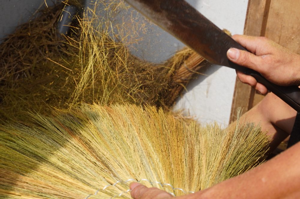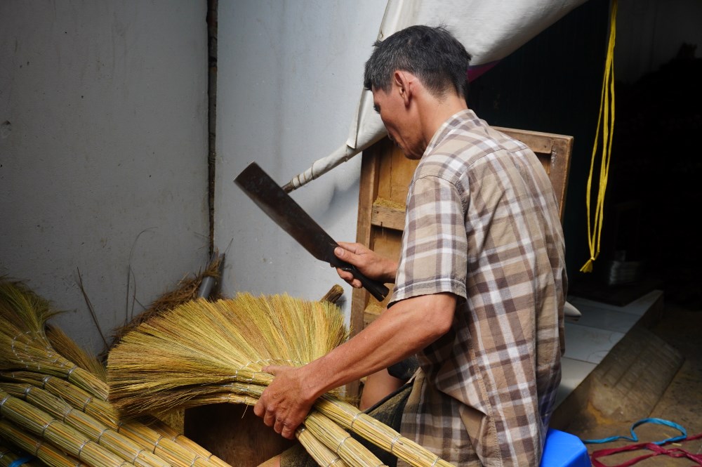 Để kích thước của chổi đót được đều nhau, người thợ sẽ phải trải qua công đoạn chặt tề.