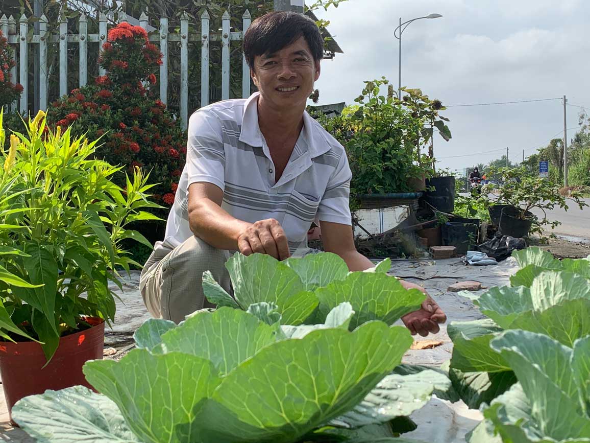 Năm nay, ông Tặng trồng khoảng 500 chậu bắp cải nhưng hiện bán chỉ còn vài chục chậu. Ảnh: Mỹ LyCách đó không xa, ông Lê Văn Bé Chính (53 tuổi, quận Thốt Nốt, TP Cần Thơ) cũng nắm bắt nhu cầu thị trường mà trồng bắp cải trong chậu đã hơn 4 năm nay. Theo nông dân này, người tiêu dùng, nhất là những ai ở thành thị, không có nhiều diện tích đất thường thích mua bắp cải trồng trong chậu.