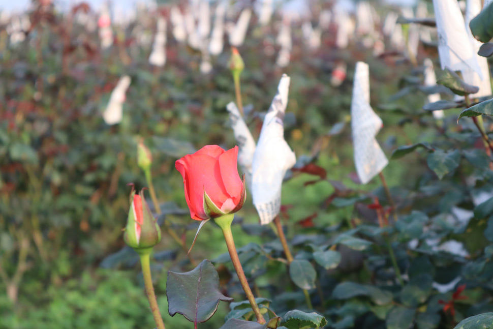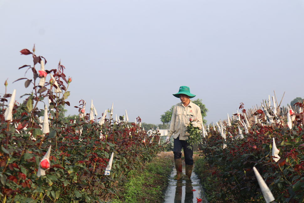 "Chuẩn bị cho Tết Nguyên đán Giáp Thìn 2024, tôi trồng khoảng hơn 2.000m2 hoa hồng với nhiều chủng loại, đa dạng về màu sắc. Năm nay thời tiết ấm nên giá hoa hồng rẻ hơn mọi năm. Nếu thời tiết cứ ấm như thế này thì rất lo là hoa sẽ nở trước Tết", anh Nguyễn Văn Minh (Mê Linh, Hà Nội), chủ nhà vườn chia sẻ.