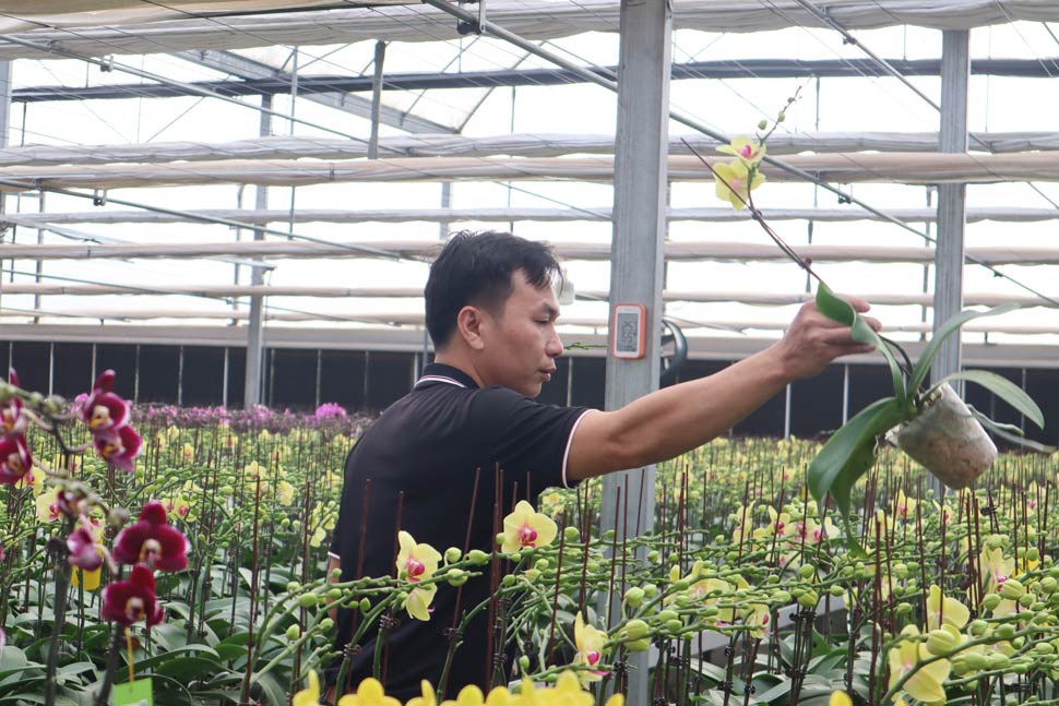 Trang trại của gia đình chị Thuý là một trong những hộ trồng hoa làm chủ quy trình nhân giống, chăm sóc cho lan với hệ thống khép kín cùng máy móc hiện đại, giúp kiểm soát tối ưu ảnh hưởng từ thời tiết tới sự phát triển của hoa trong từng giai đoạn.