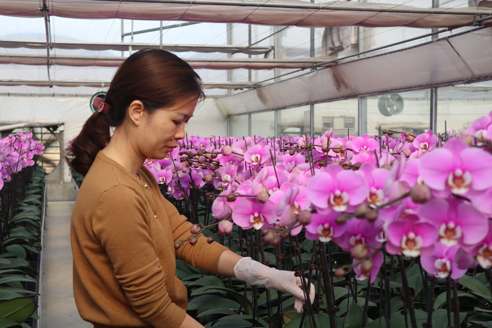 Năm nay, trang trại Mê Linh F-Farm của gia đình chị Nguyễn Thị Tuý (Mê Linh, Hà Nội) dự kiến cung ứng ra thị trường khoảng 60.000 cây lan Hồ Điệp các loại.