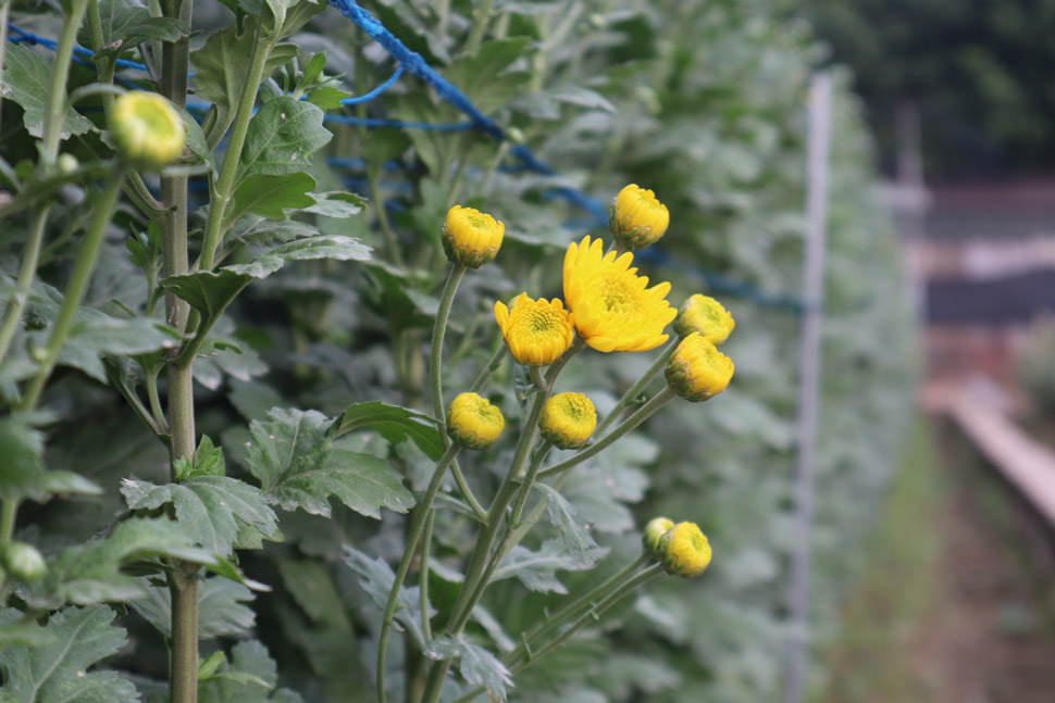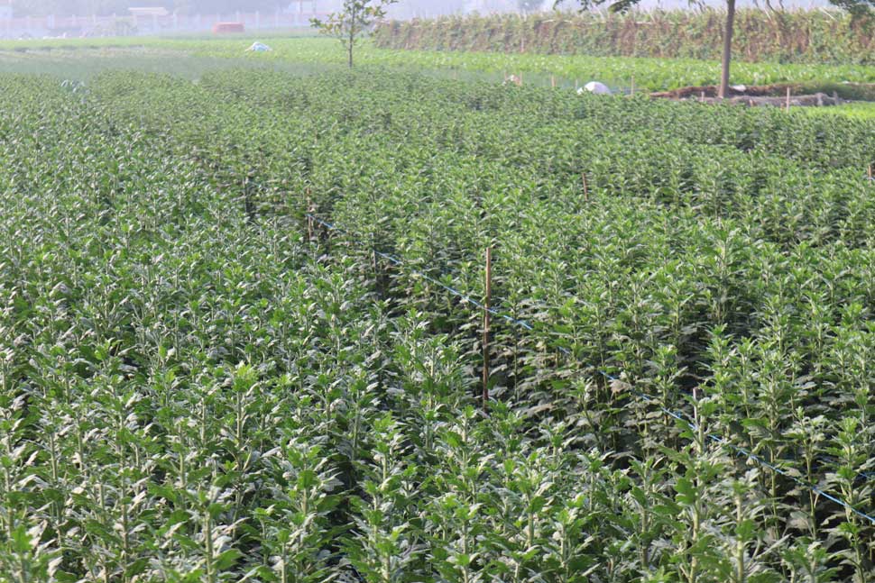 Huyện Mê Linh cũng là vùng chuyên canh hoa cúc với những thửa ruộng trải dài bạt ngàn. Hoa cúc vụ Tết cũng được người nông dân chăm bón kỹ lưỡng, kỳ vọng một năm được mùa, được giá.