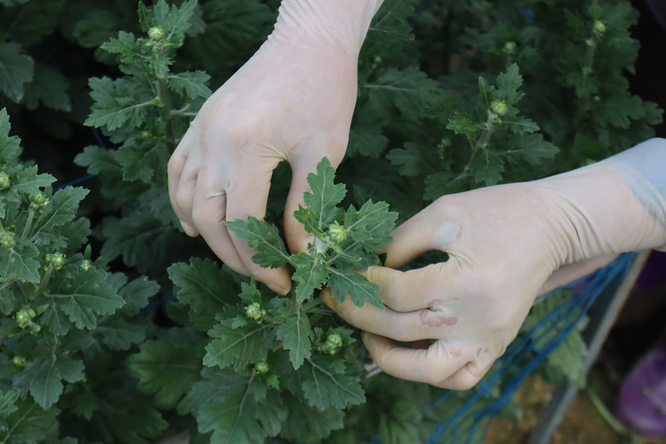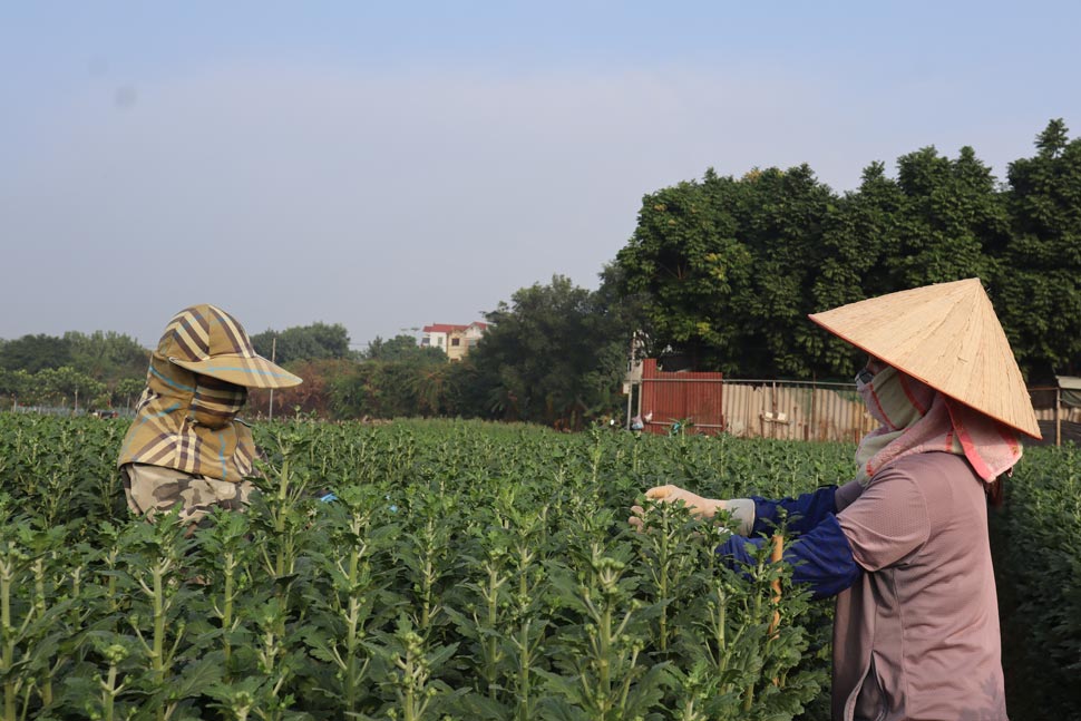 Chị Trần Thị Thuỳ (Mê Linh, Hà Nội), chủ nhà vườn cho biết: "Hiện tại chúng tôi đang bắt đầu công đoạn tỉa để hoa nở đúng dịp Tết. Giá mỗi bông cúc nở to, đẹp là gần 3.000 đồng. Nông dân chúng tôi rất mong chờ vào vụ Tết năm nay được mùa, được giá để bà con ấm no hơn".