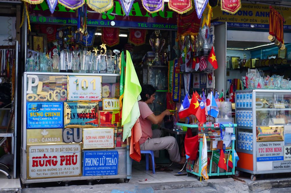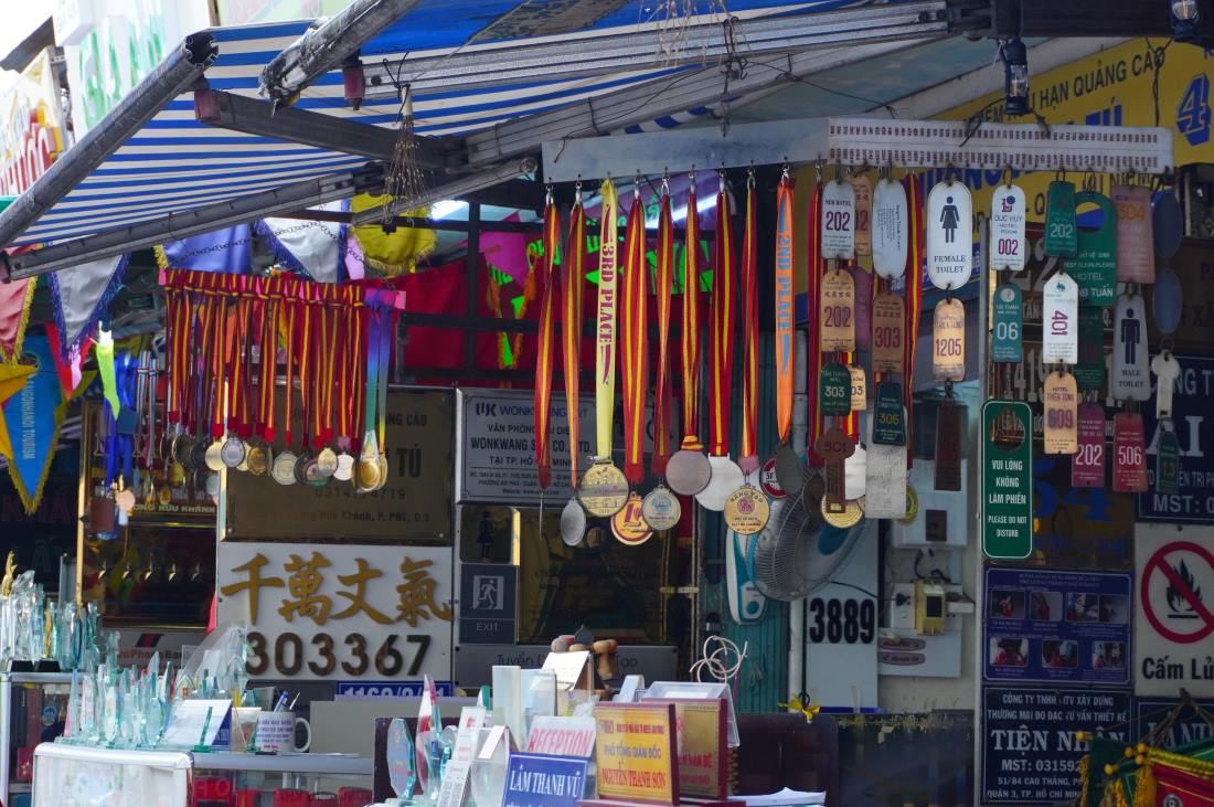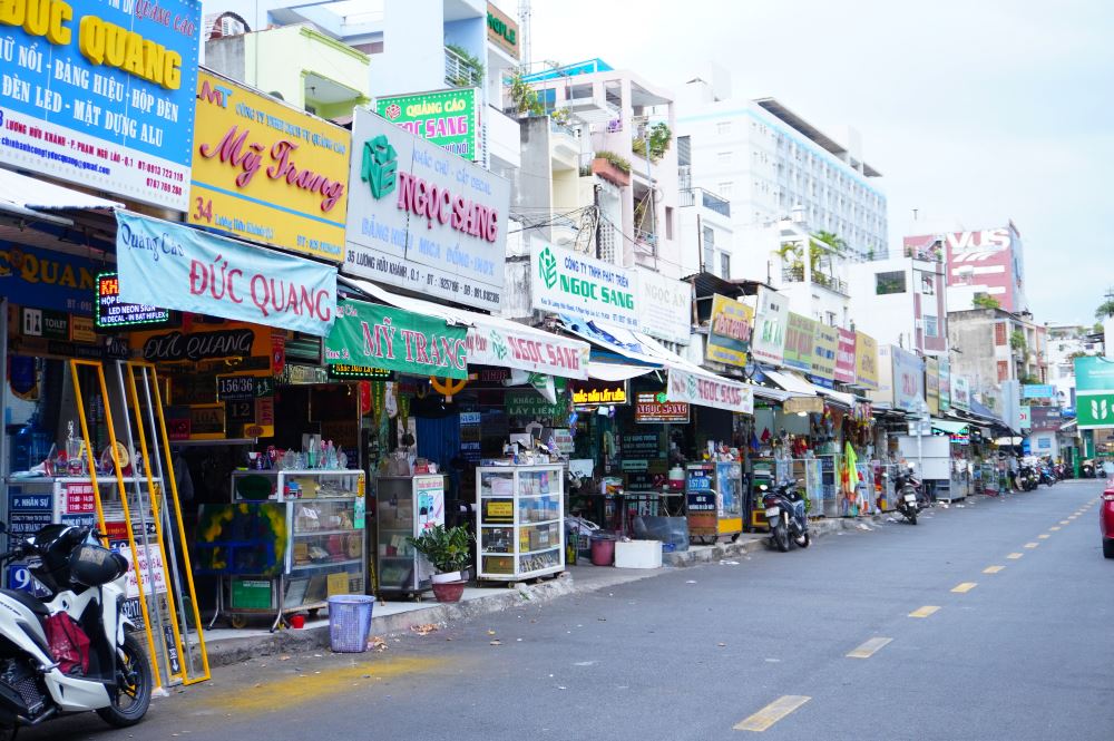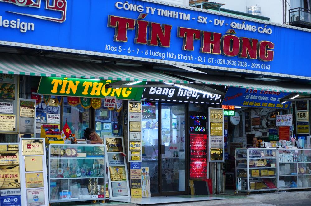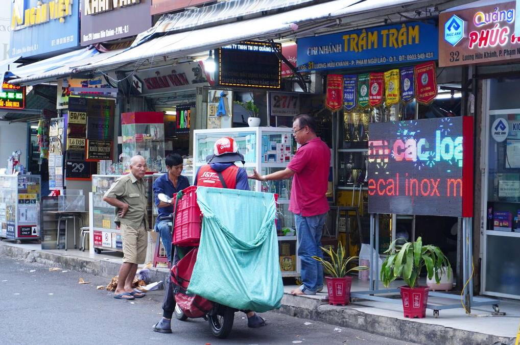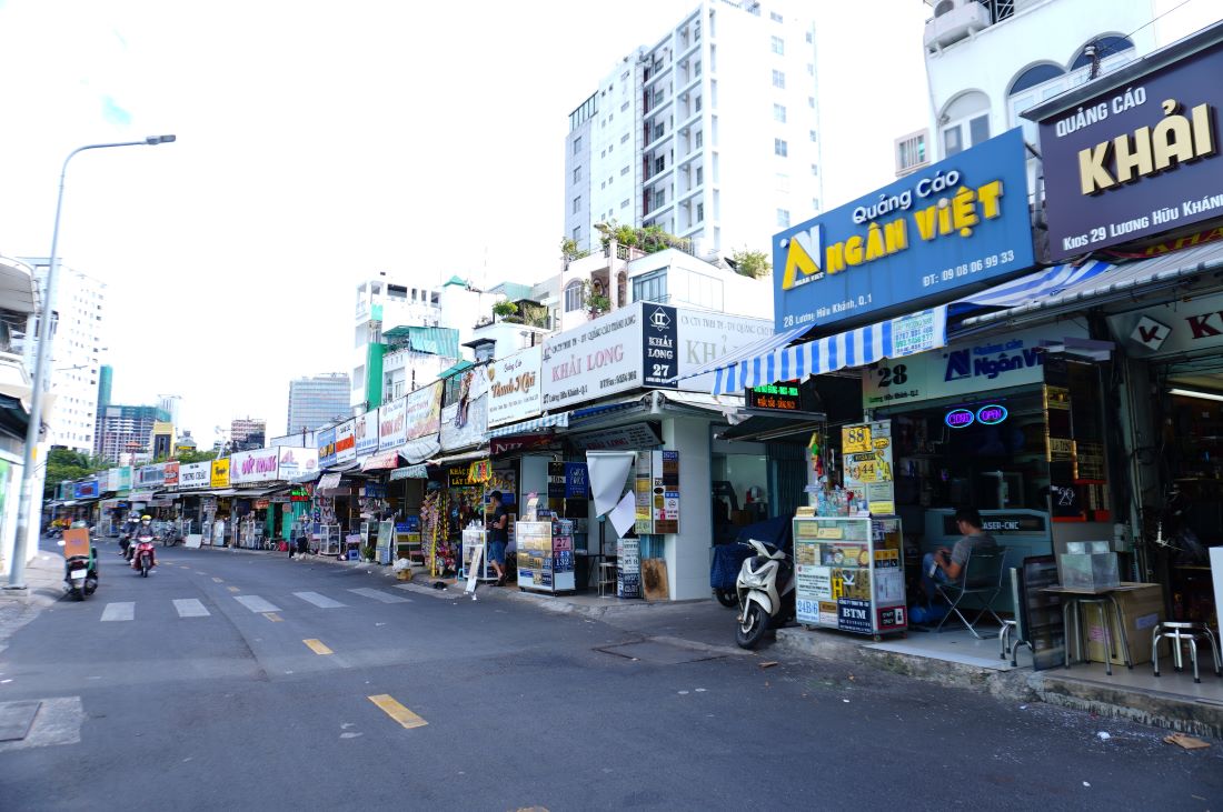 Dạo quanh một vòng con đường Lương Hữu Khánh - nơi buôn bán biển hiệu, bằng khen lớn nhất TPHCM, không khí trầm lắng, ảm đạm bao trùm. Tình cảnh ế ẩm kéo dài từ kiot này sang kiot khác.