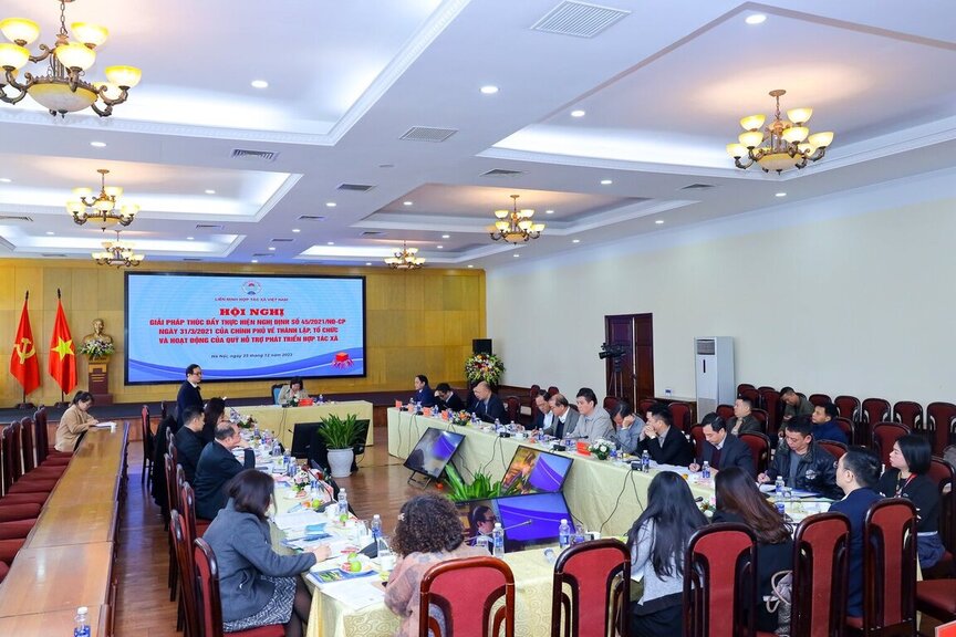 Hội nghị “Giải pháp thúc đẩy thực hiện Nghị định 45/2021/NĐ-CP về thành lập, tổ chức và hoạt động của Quỹ hỗ trợ phát triển hợp tác xã”. Ảnh: Khánh LamTrước khi Nghị định số 45/2021/NĐ-CP của Chính phủ về việc thành lập, tổ chức và hoạt động Quỹ hỗ trợ phát triển hợp tác xã có hiệu lực thi hành, ngoài Quỹ hỗ trợ phát triển hợp tác xã Việt Nam do Thủ tướng Chính phủ thành lập, trên địa bàn cả nước có 50 tỉnh, thành phố đã thành lập Quỹ hỗ trợ phát triển hợp tác xã (quỹ địa phương).
