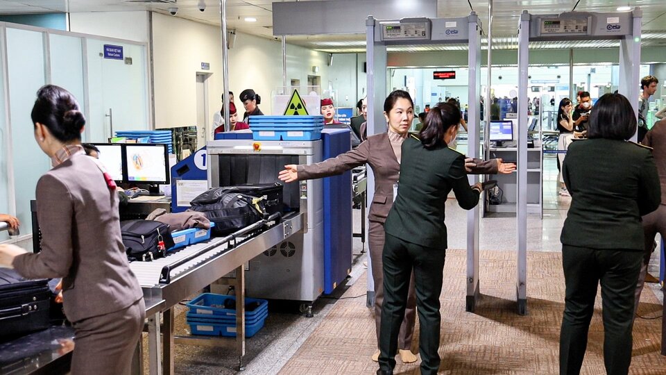 Công tác đảm bảo an ninh tại sân bay được nâng cao. Ảnh: Khánh LinhThời điểm cận kề các ngày lễ lớn, nguy cơ các đối tượng xâm nhập trái phép, trộm cắp, phá hoại gây uy hiếp an ninh an toàn tại Cảng gia tăng. Để kịp thời xử lý, Cảng cho biết sẽ phối hợp với Đồn Công an Cảng, Phòng Cảnh sát bảo vệ, Cảnh sát cơ động, lực lượng đóng quân canh phòng kiểm tra, giám sát chặt chẽ khu vực vành đai, khu vực công cộng để có phương án phòng ngừa một cách chủ động.