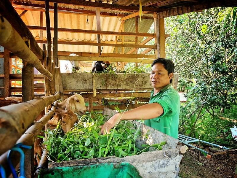 Nông dân trồng bưởi Nguyễn Văn Bé, chọn nuôi dê sinh sản để có thu nhập, không trông chờ vào thu nhập từ bưởi. Ảnh: Hoàng LộcCũng chịu chung cảnh tình mất mùa, mất giá, ông Ngô Văn Ga (xã Mỹ Hòa, thị xã Bình Minh, tỉnh Vĩnh Long) cho biết, năng suất bưởi hiện chỉ đạt khoảng 1/3 so với trước đây.