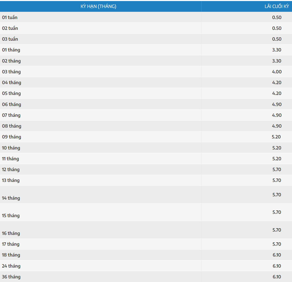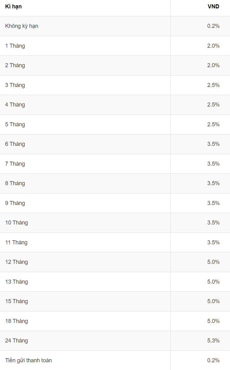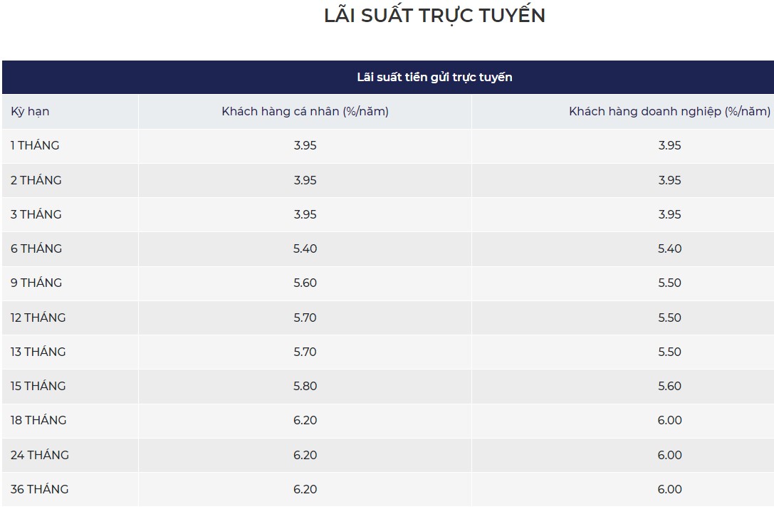 * Thông tin về lãi suất chỉ mang tính chất tham khảo và có thể thay đổi trong từng thời kì. Vui lòng liên hệ điểm giao dịch ngân hàng gần nhất hoặc hotline để được tư vấn cụ thể.