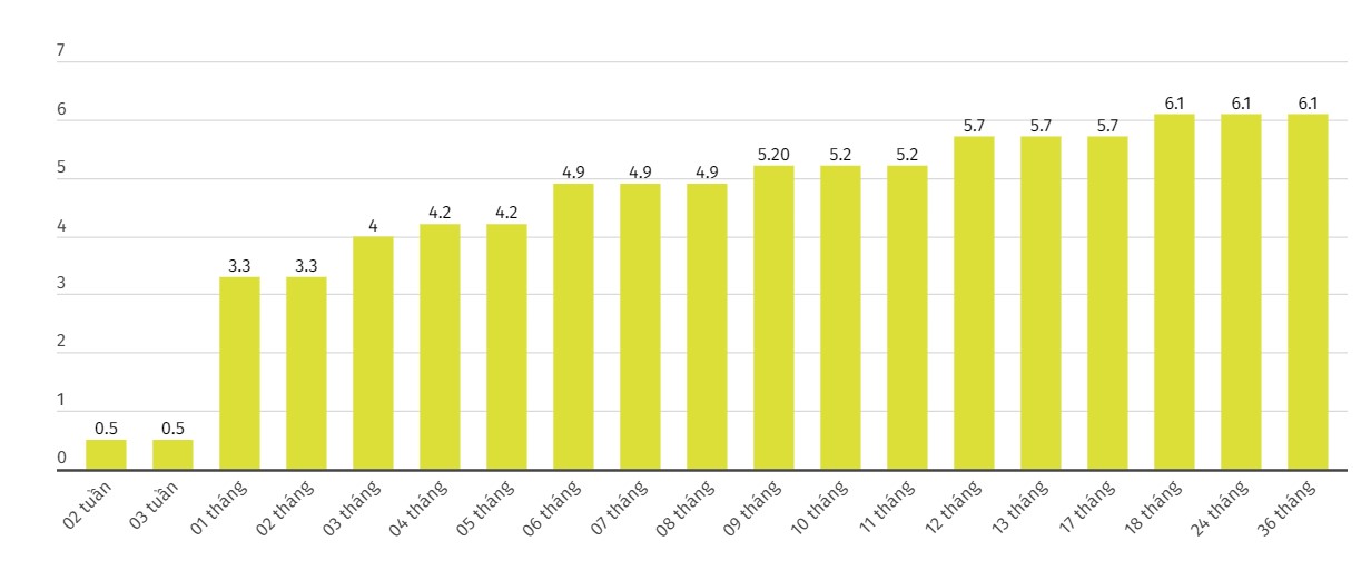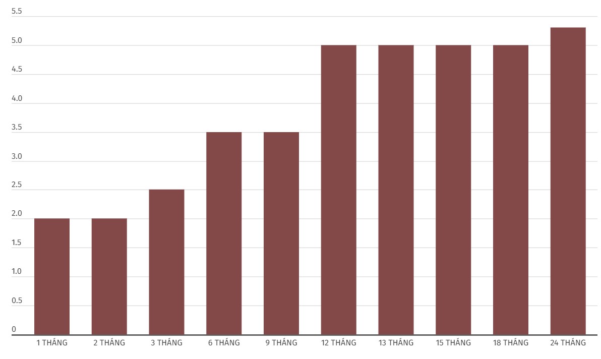 Biểu đồ lãi suất Agribank đầu giờ sáng 3.1.2024. Đồ họa: Khương DuyLãi suất KienlongBank
