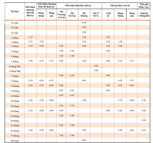Thông tin về lãi suất chỉ mang tính chất tham khảo và có thể thay đổi trong từng thời kỳ. Vui lòng liên hệ điểm giao dịch ngân hàng gần nhất hoặc hotline để được tư vấn cụ thể.