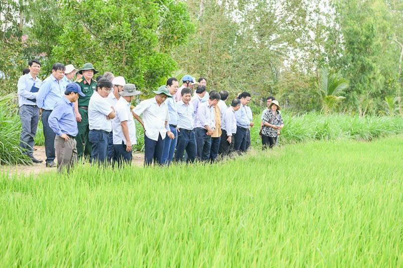 Trước tình hình hạn, xâm nhập mặn gay gắt ảnh hưởng đến sản xuất lúa trên địa bàn, vừa qua ông Lâm Vân Mẫn - Bí thư Tỉnh ủy Sóc Trăng - cũng đã trực tiếp đến các đồng lúa để có những chỉ đạo kịp thời.