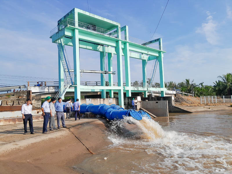 Ngành thủy lợi tỉnh Sóc Trăng vận hành cống lấy nước ngọt phục vụ sản xuất. Ảnh: Phương AnhÔng Đạo cũng khuyến cáo bà con cần chủ động kiểm tra nguồn nước trước khi bơm, tưới cho cây trồng cũng như sử dụng nước tiết kiệm hiệu quả.