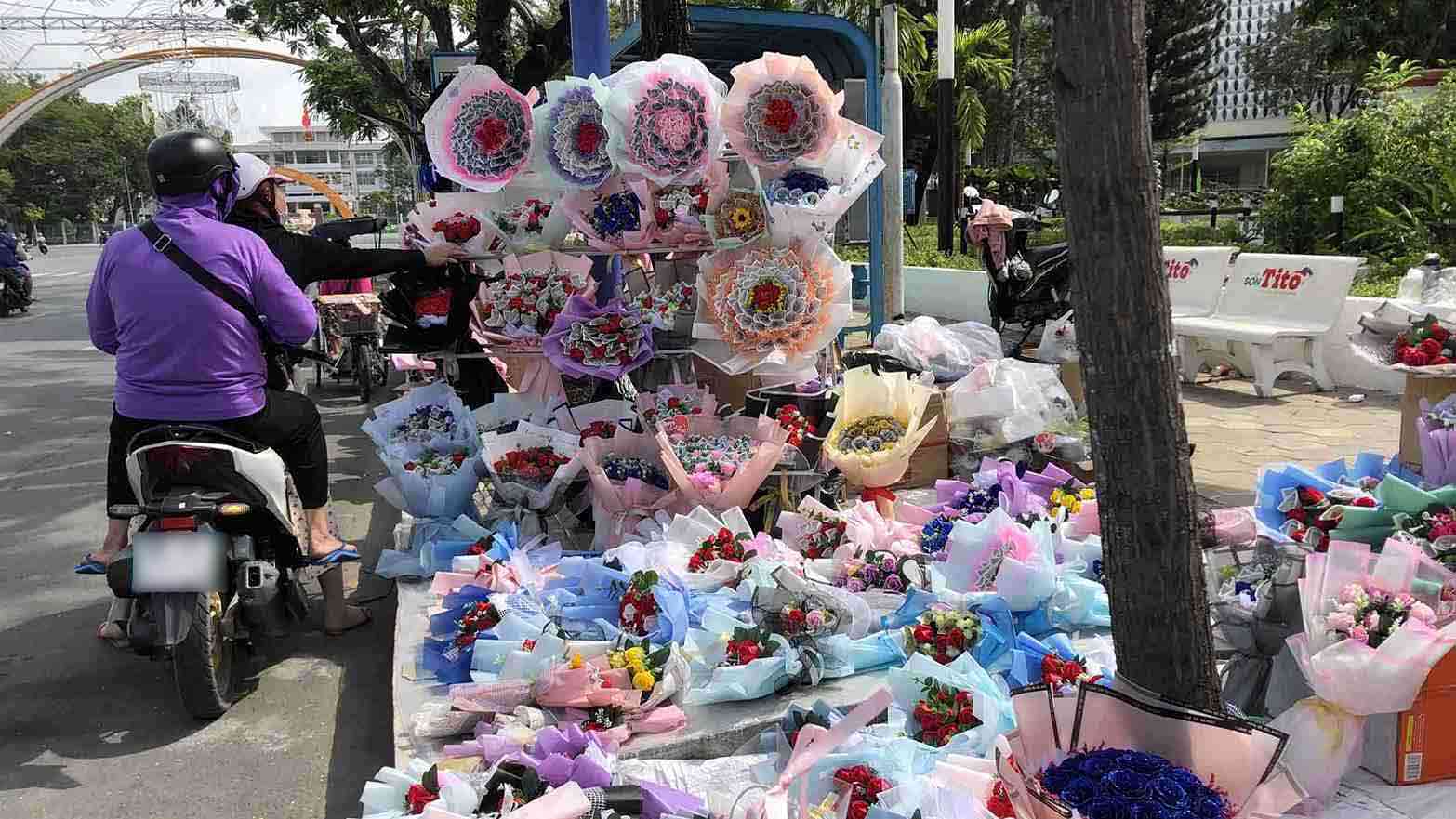 Trái với sự trầm lắng của mặt hàng hoa tươi, những bó hoa handmade làm từ len lại được nhiều người ưu tiên lựa chọn.