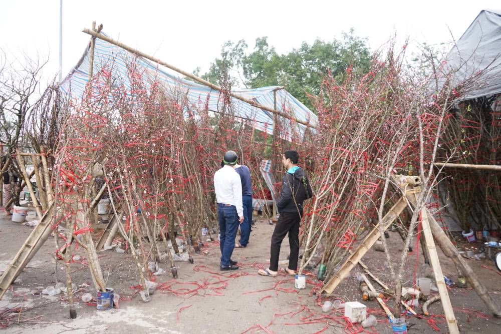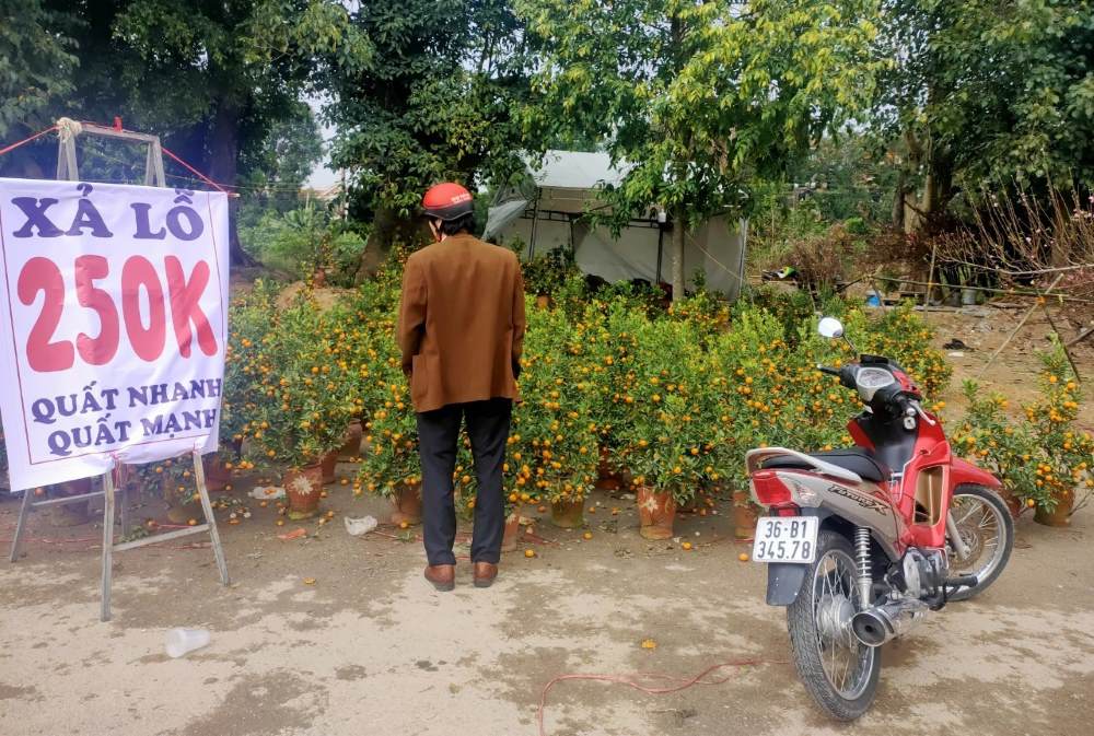 Anh Cường (một tiểu thương buôn bán đào, ở phường Phú Sơn, TP. Thanh Hóa) cho biết, năm nay dù đã áp Tết nhưng người đi mua sắm đào quất khá ít. Điều này khiến các tiểu thương buôn đào nói riêng và buôn hoa tết nói chung không khỏi lo lắng. Ảnh: Quách Du