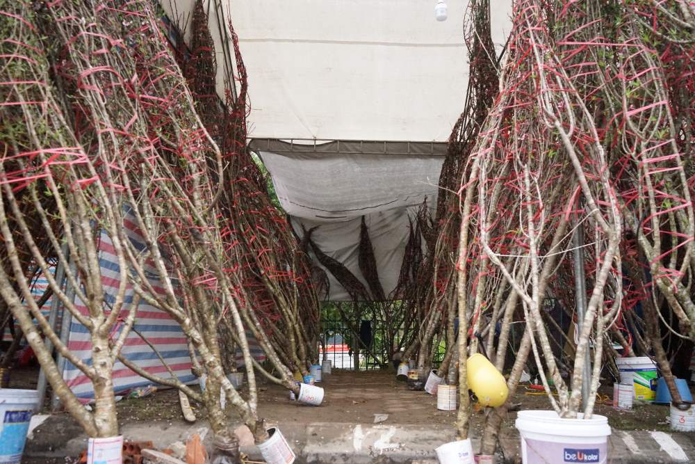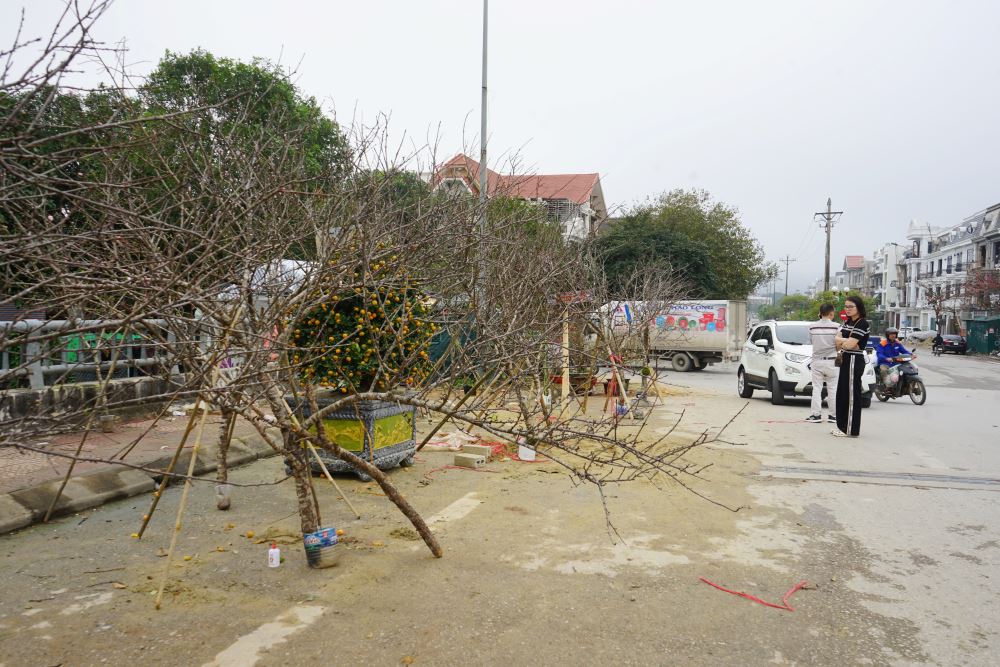 Trên các tuyến phố, con đường bán hoa tết ở TP. Thanh Hóa có phần thưa vắng người mua. Ảnh: Quách Du