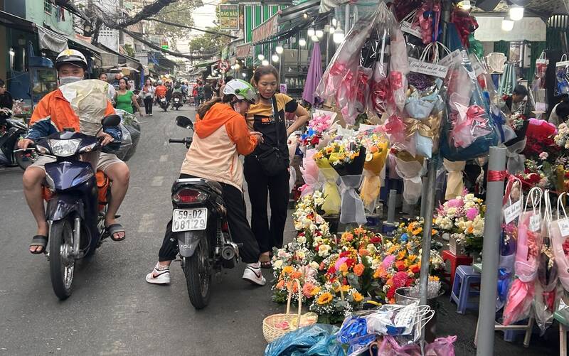 Ghi nhận tại một số tuyến đường ở TPHCM như Nguyễn Văn Cừ (Quận 5), Nguyễn Trãi (Quận 1), 3 tháng 2, Hồ Thị Kỷ (Quận 10)…, các điểm kinh doanh hoa và quà tặng tấp nập người mua kẻ bán.