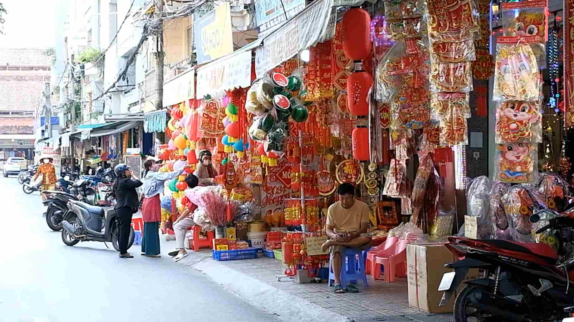 Mặc dù việc kinh doanh đồ trang trí Tết có phần khả quan hơn các mặt hàng còn lại nhưng chị Trang vẫn chật vật vì tình hình kinh tế khó khăn, việc kinh doanh còn chịu sự cạnh tranh của sàn thương mại điện tử nên lượng hàng bán ra còn chậm.