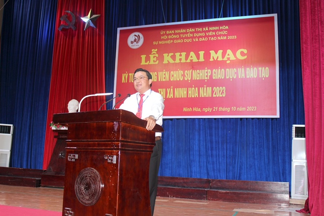 Phát biểu tại lễ khai mạc, ông Lê Minh Tâm, Phó chủ tịch UBND TX.Ninh Hòa, Chủ tịch Hội đồng tuyển dụng, cho biết năm học 2023 - 2024, ngành giáo dục thị xã có nhiều thuận lợi và không ít khó khăn, đòi hỏi toàn ngành phải quyết tâm, nỗ lực, phấn đấu hơn nữa để thực hiện có hiệu quả Chương trình hành động số 20-CTr/TU ngày 24/4/2014 của Tỉnh ủy Khánh Hòa về việc thực hiện Nghị quyết số 29-NQ/TW ngày 04/11/2013 của Ban Chấp hành Trung ương về đổi mới căn bản, toàn diện giáo dục và đào tạo. Lãnh đạo TX.Ninh Hòa rất quan tâm đến sự phát triển toàn diện của ngành giáo dục; trong đó đặc biệt quan tâm đến việc xây dựng và hoàn thiện đội ngũ giáo viên, vừa đảm bảo về số lượng, vừa nâng cao chất lượng.