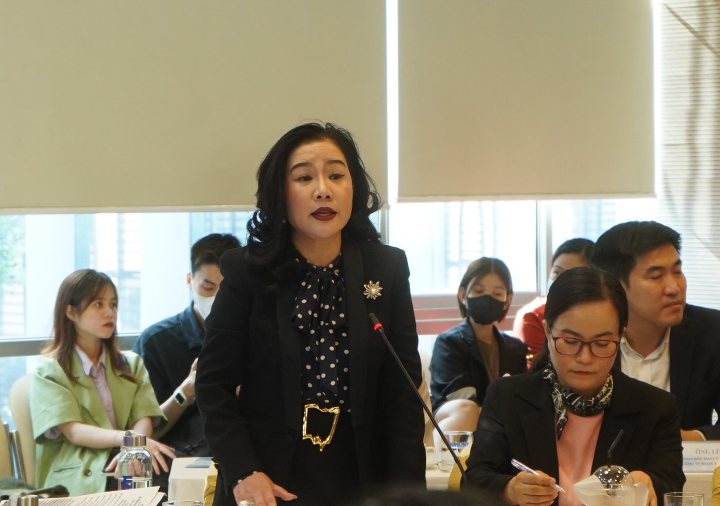 Bà Nguyễn Thị Thảo Nhi - Chủ tịch HĐQT kiêm Tổng Giám đốc Công ty CP Thanh Bình Phú Mỹ chia sẻ tại Hội thảo. Ảnh: Phương NgânTheo ông Lê Viết Phúc - Phó trưởng Ban Quản lý các KCN tỉnh Bà Rịa -Vũng Tàu, vấn đề khó khăn trong việc thu hút dự án "xanh" là các nhà đầu tư đòi hỏi vị trí nhà máy thuận lợi. Nhà đầu tư muốn nhà máy phải gần cảng, vị trí giao thông thuận lợi, mặc dù đã có phân khu chức năng và quy hoạch cụ thể. Do đó, nếu đáp ứng theo yêu cầu của các nhà đầu tư thì không thể giữ vững định hướng phân vùng, và phá vỡ quy hoạch. Ngược lại, nếu không đáp ứng được đòi hỏi, nhà đầu tư sẽ đi nơi khác.