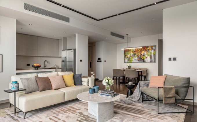 Căn hộ tại tòa Lake, dự án Grand Marina Saigon hoàn thiện bằng nội thất cao cấp, trang bị công nghệ smarthome cùng tầm nhìn ra sông Sài Gòn.