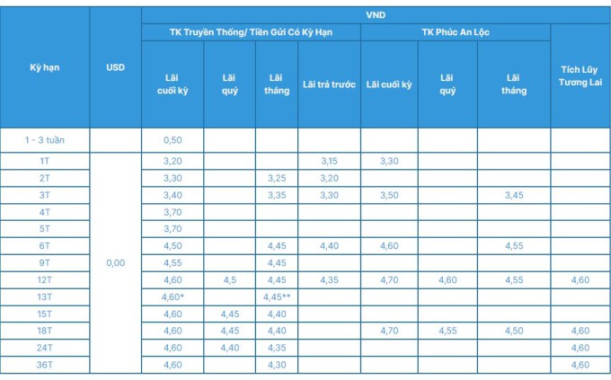 Lãi suất kì hạn 15 tháng dao động quanh ngưỡng 4,0 - 6,4%, tuỳ từng ngân hàng. Trong đó, lãi suất Agribank, VPBank, ACB đang được quan tâm. Nếu có 300 triệu đồng gửi tiết kiệm, bạn hãy tham khảo chi tiết lãi suất dưới đây.
