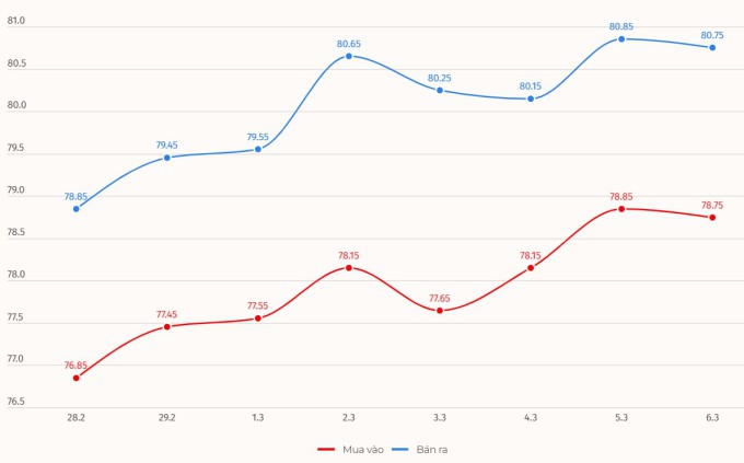 Giá vàng hôm nay 6.3 duy trì ở ngưỡng cao. Vàng nhẫn tiếp tục được điều chỉnh tăng quanh ngưỡng 50.000-100.000 đồng/lượng.