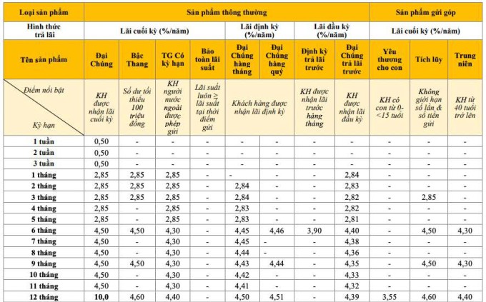 Lãi suất tiết kiệm kì hạn 13 tháng trong hệ thống ngân hàng dao động quanh ngưỡng 4,4 - 10%. Bạn đọc có 2 tỉ đồng tiền nhàn rỗi có thể tham khảo gửi tiết kiệm tại một số ngân hàng niêm yết lãi suất cao nhất hệ thống dưới đây.