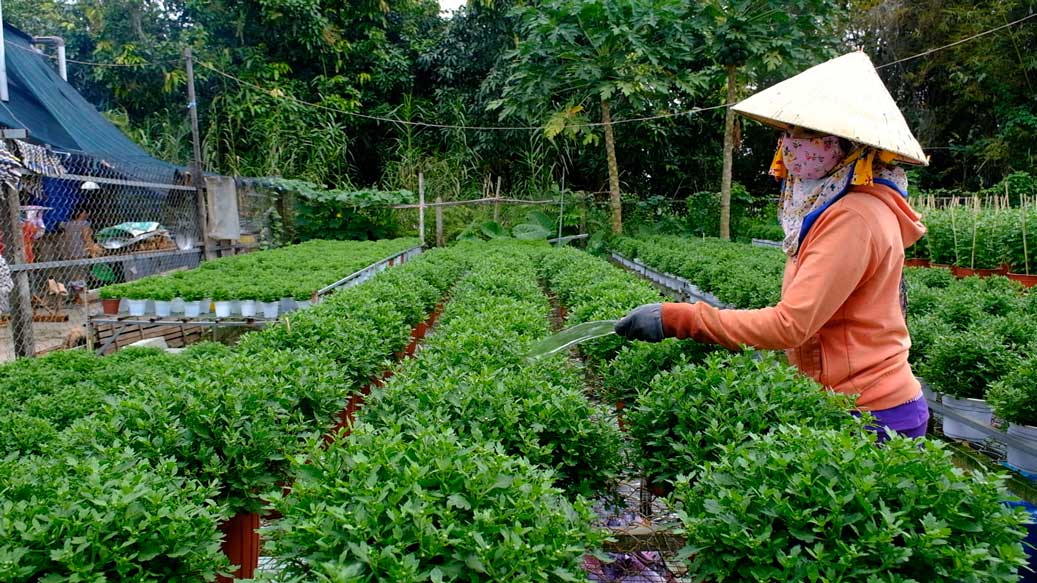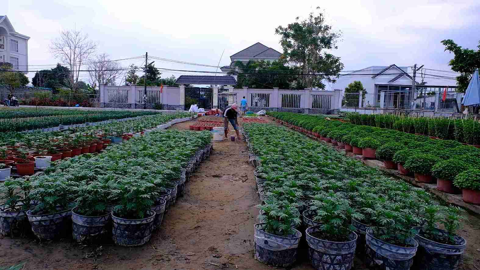 Để hoa ra đẹp, người trồng phải bỏ công chăm sóc kỹ càng. Ảnh: Ngọc LyTheo thông tin từ Trạm khuyến nông quận Bình Thủy, năm nay làng hoa của quận sẽ cho ra thị trường trên 286.500 chậu hoa kiểng các loại. Dự kiến giá hoa Tết năm nay không tăng so với Tết năm 2023 do tình hình kinh tế còn gặp nhiều khó khăn.