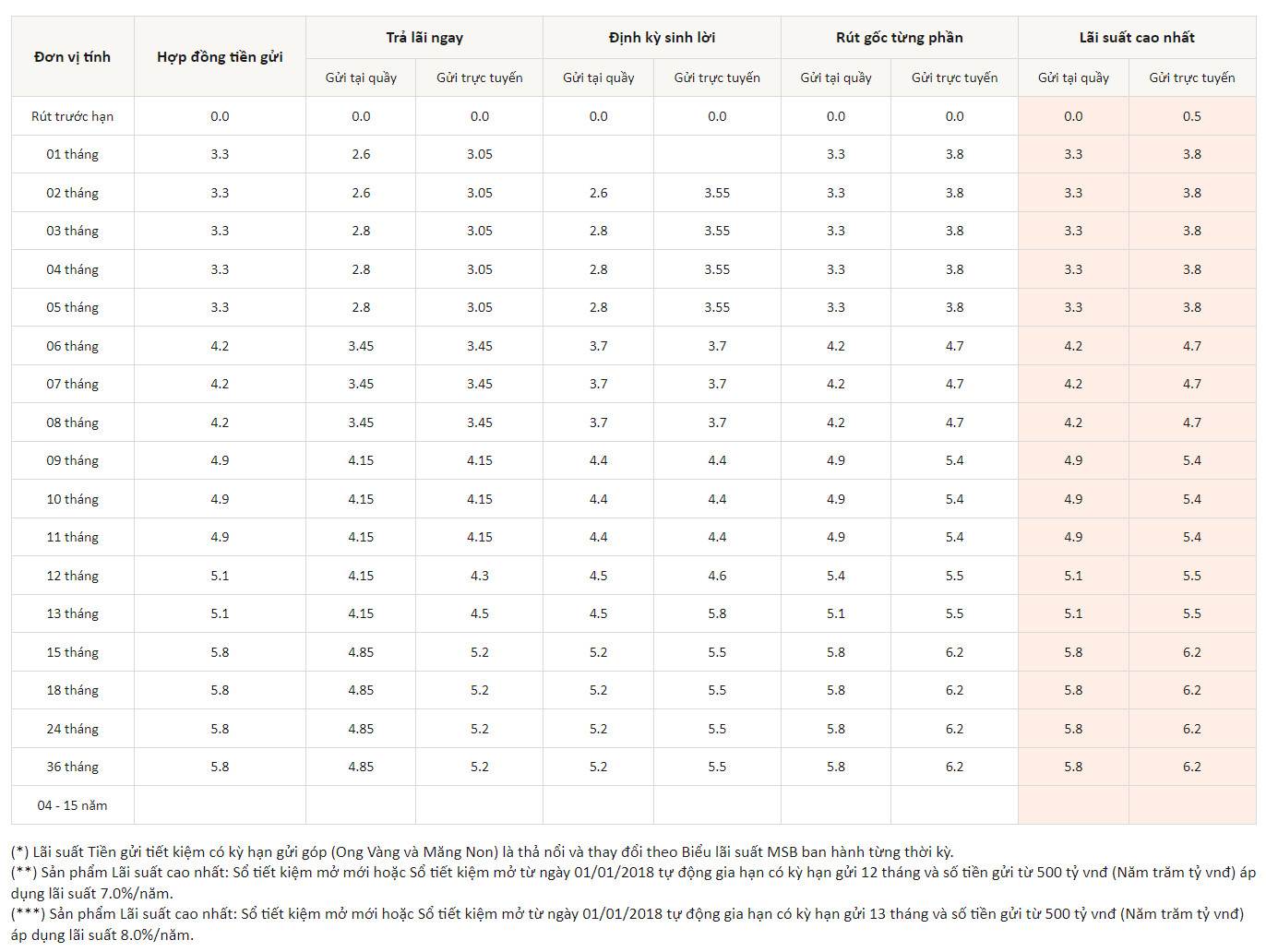 Cập nhật biểu lãi suất tạo MSB sáng 17.12.2023. Ảnh chụp màn hình