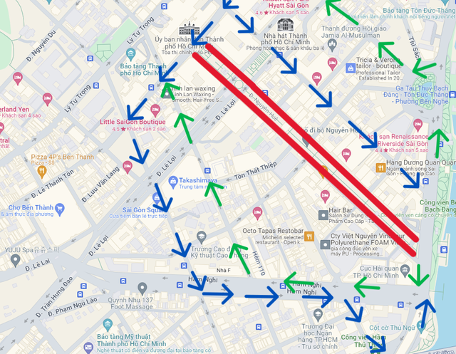+ Đối với hướng từ đường Tôn Đức Thắng đến đường Lê Thánh Tôn: