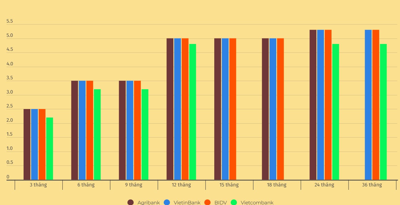 So sánh lãi suất Vietcombank, Agribank, VietinBank và BIDV