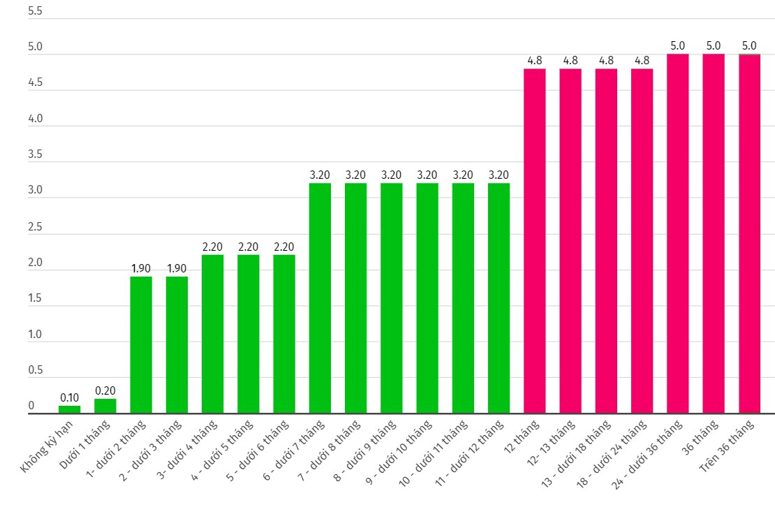 Cập nhật biểu lãi suất của Vietcombank. Đơn vị tính: %/năm. Biểu đồ: Khương Duy