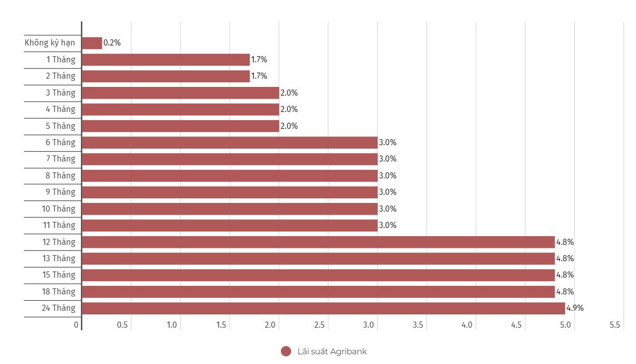 Cập nhật biểu lãi suất của Agribank. Đơn vị tính: %/năm. Biểu đồ: Khương Duy