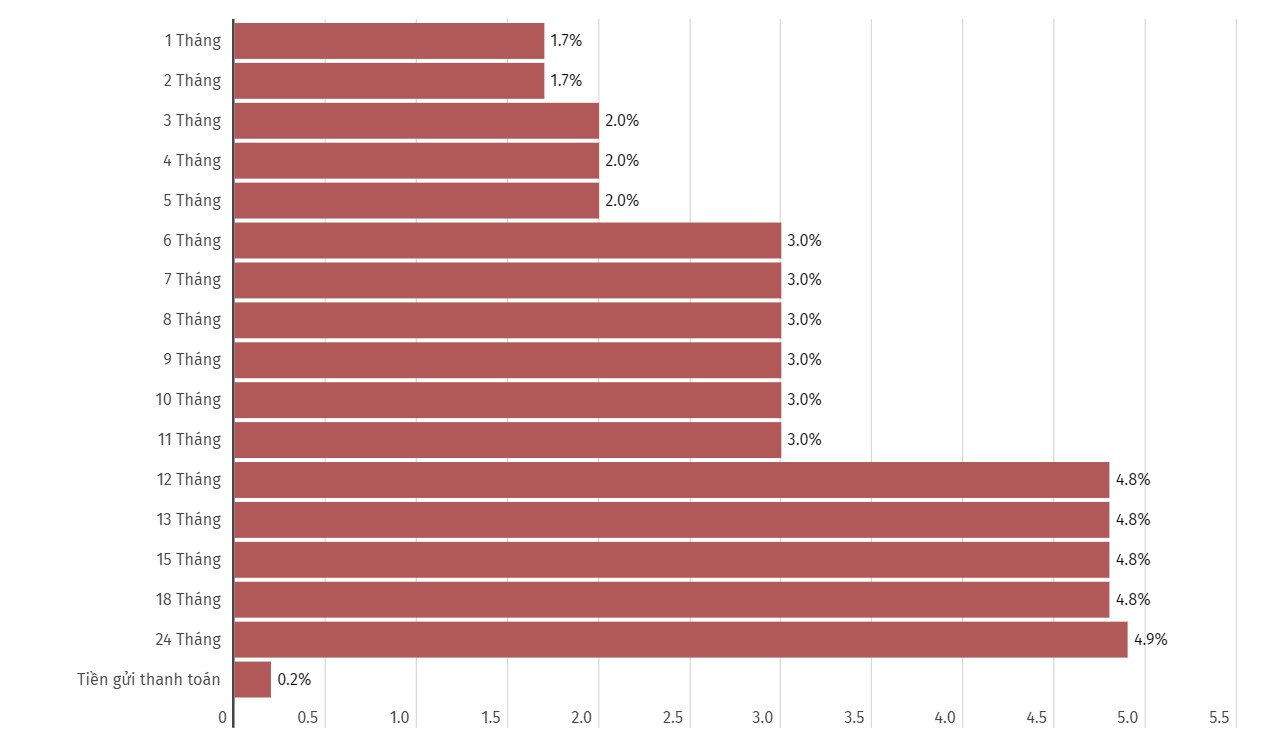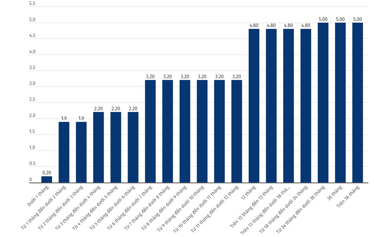 Cập nhật biểu lãi suất của Vietcombank. Đơn vị tính: %/năm. Biểu đồ: Khương Duy