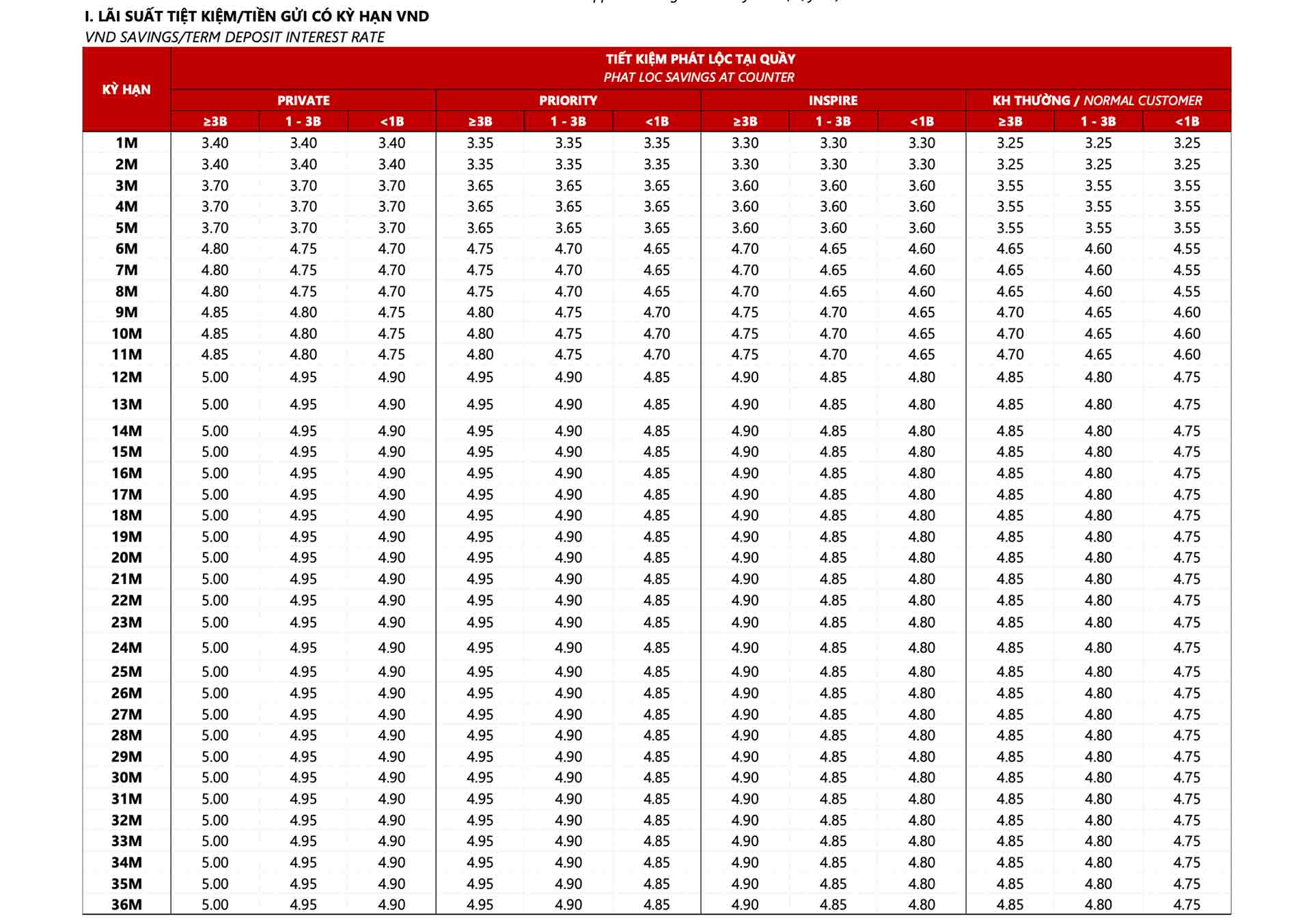 Cụ thể, mức lãi suất cao nhất 4,8%/năm đang được áp dụng đối với các kỳ hạn từ 12 tháng đến 36 tháng. Tuy nhiên, mức lãi suất này dành cho khách VIP.